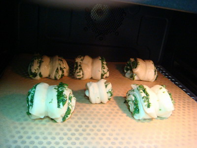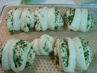 蔥很多,所以放了一大堆...麵團包上蔥花,看著食譜書胡亂整型,就進sharp發酵去了...