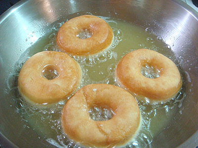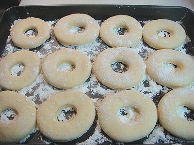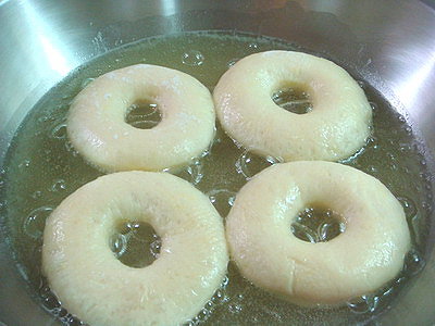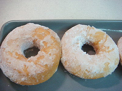 所以炸起來的甜甜圈放在旁邊,糖粉用空拋的就好,不要進去整缸滾糖粉....