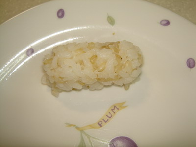 壓出來後,抹點芥末,蓋上生魚片就好了
