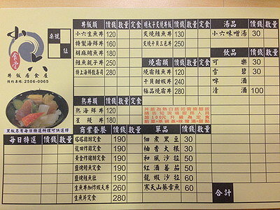 好,這是它的菜單,我們兩個都點了特上海鮮散壽司....
