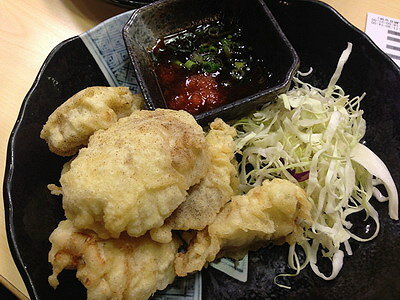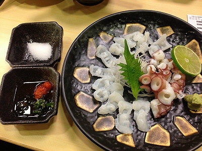 於是章魚的一隻腳變成沙西米端到我們桌上.....