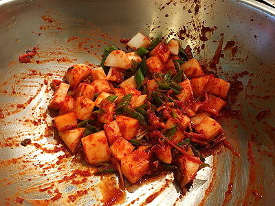 除了一般家庭醃泡菜,老師還教了餐廳的作法.....